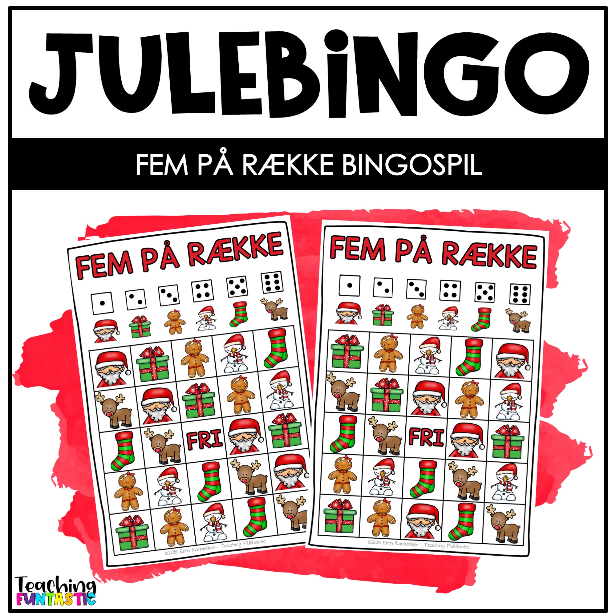 “Fem på række” er et sjov og enkel spil, som kan bruges hvis man har lidt tid tilovers til julehygge. Fem på række spilles med 2-4 spillere. Hver spiller har sit eget unikke bræt. En elev starter med at kaste terningen, og alle spillerne kan så dække figuren som prikkerne på terningen svarer til. Sådan fortsætter de til en af eleverne har fået fem på række og dermed er vinderen af spillet.