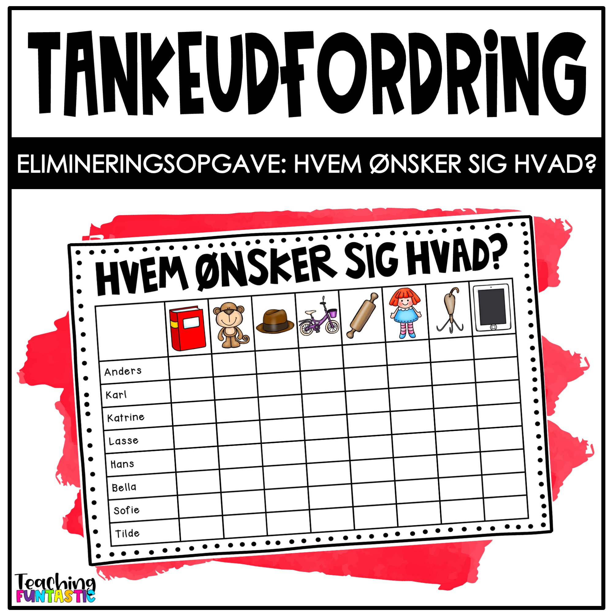 “Hvem ønsker sig hvad?” er en sjov tankeudfordring med få instruktioner, som giver plads til problemløsning og gode diskussioner. Her skal eleverne arbejde sammen om at løse opgaven ved at eliminere og resonere. Har du allerede prøvet “Hvem er hvad til Halloween” så kender eleverne til opgavetypen.