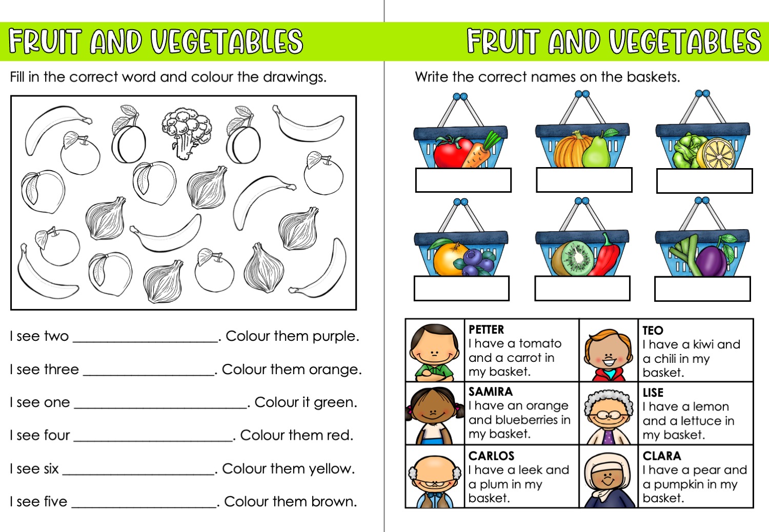 Temapakken Fruit and vegetables giver dig som lærer et færdigt og konkret materiale til at undervise i almindelige råvarer. Den passer perfekt til elever, der har brug for styrket begrebsforståelse og ordforråd i engelsk.