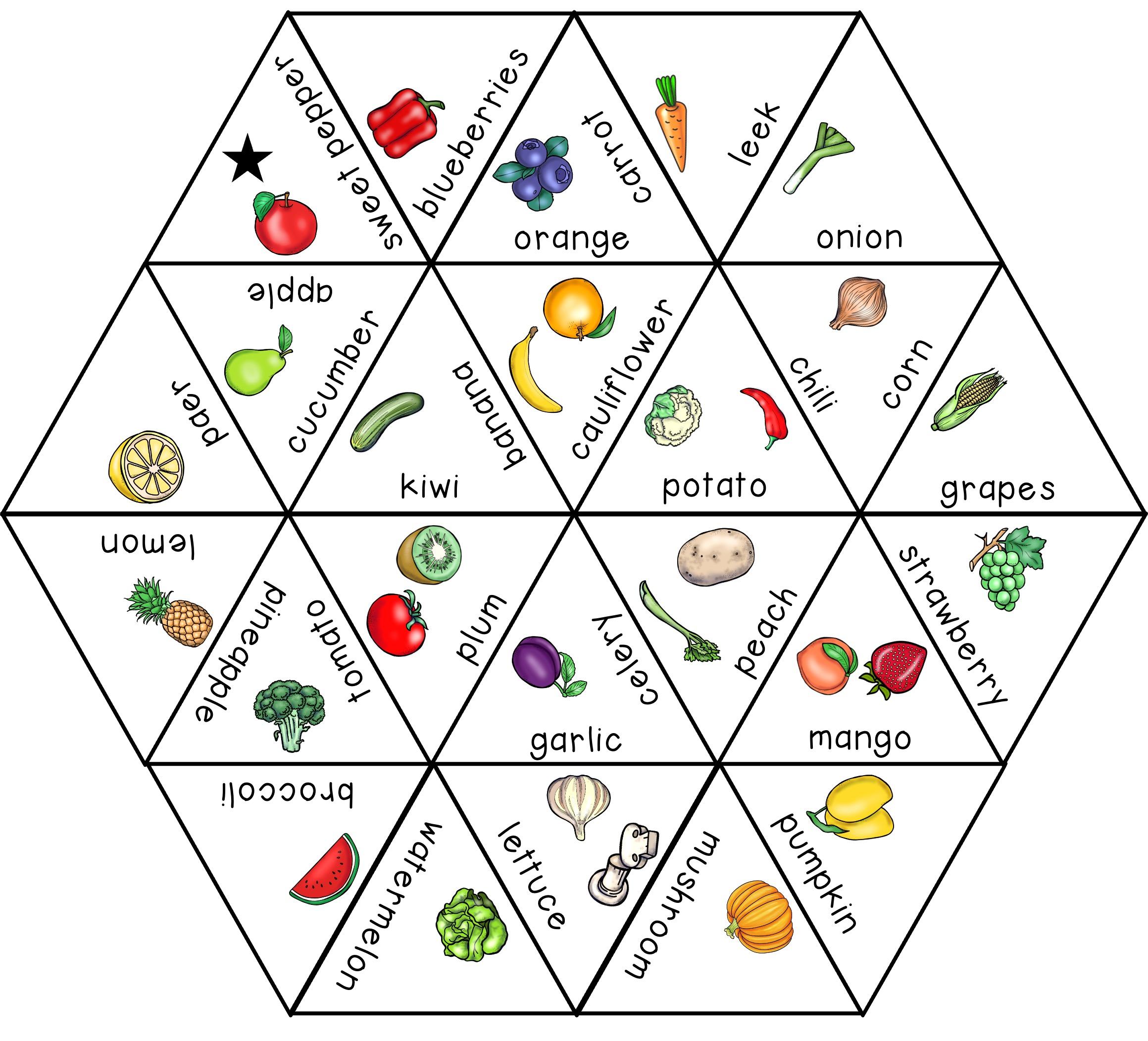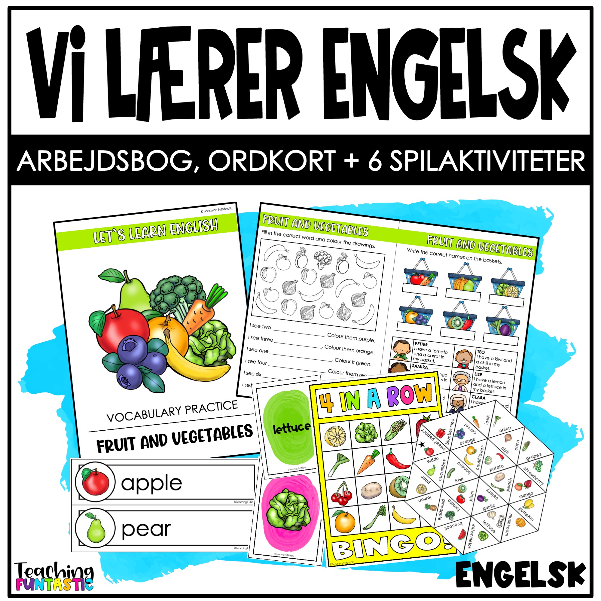 I denne temapakke lærer eleverne 32 ord knyttet til de mest almindelige frugter og grøntsager. Eksempler på ord er apple, banana, strawberry, carrot og potato. Ordene er nyttige både i samtale og undervisning og danner et godt grundlag for videre læring, blandt andet inden for mad og sundhed.