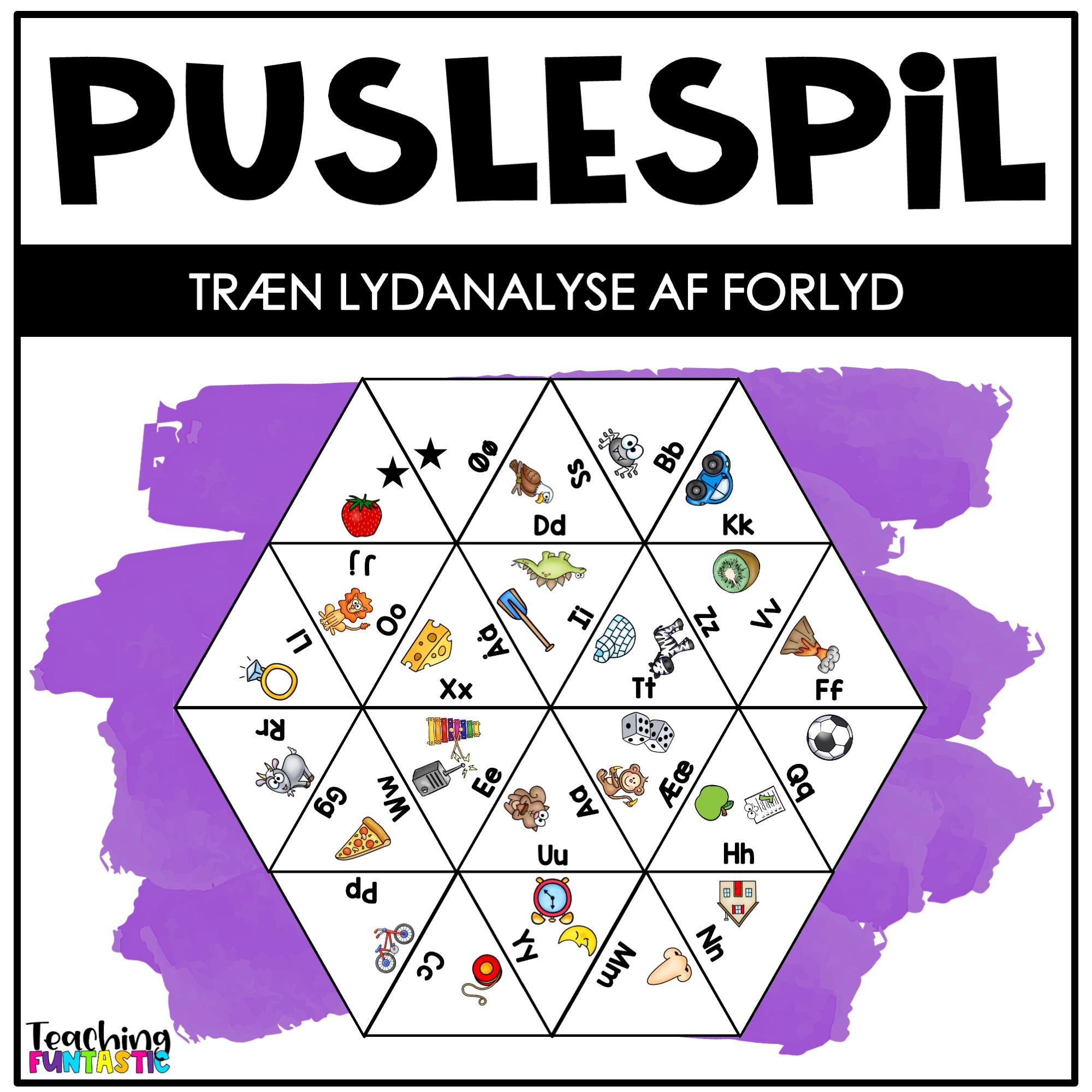 Puslespil er en praktisk og sjov måde at øve læsning og lydanalyse på. Her øver eleverne sig på at lytte efter forlyd samtidig med at de pusler brikkerne sammen. Hvis bogstav og billede bliver sat sammen rigtig, vil man ende op med et puslespil i form af en sekskant. Aktiviteten er dermed selvrettende og kræver ikke lærerhjælp. Puslespillene kan bruges både individuelt til eleverne som har brug for en ekstra udfordring, eller det kan løses i par som stationsaktivitet.