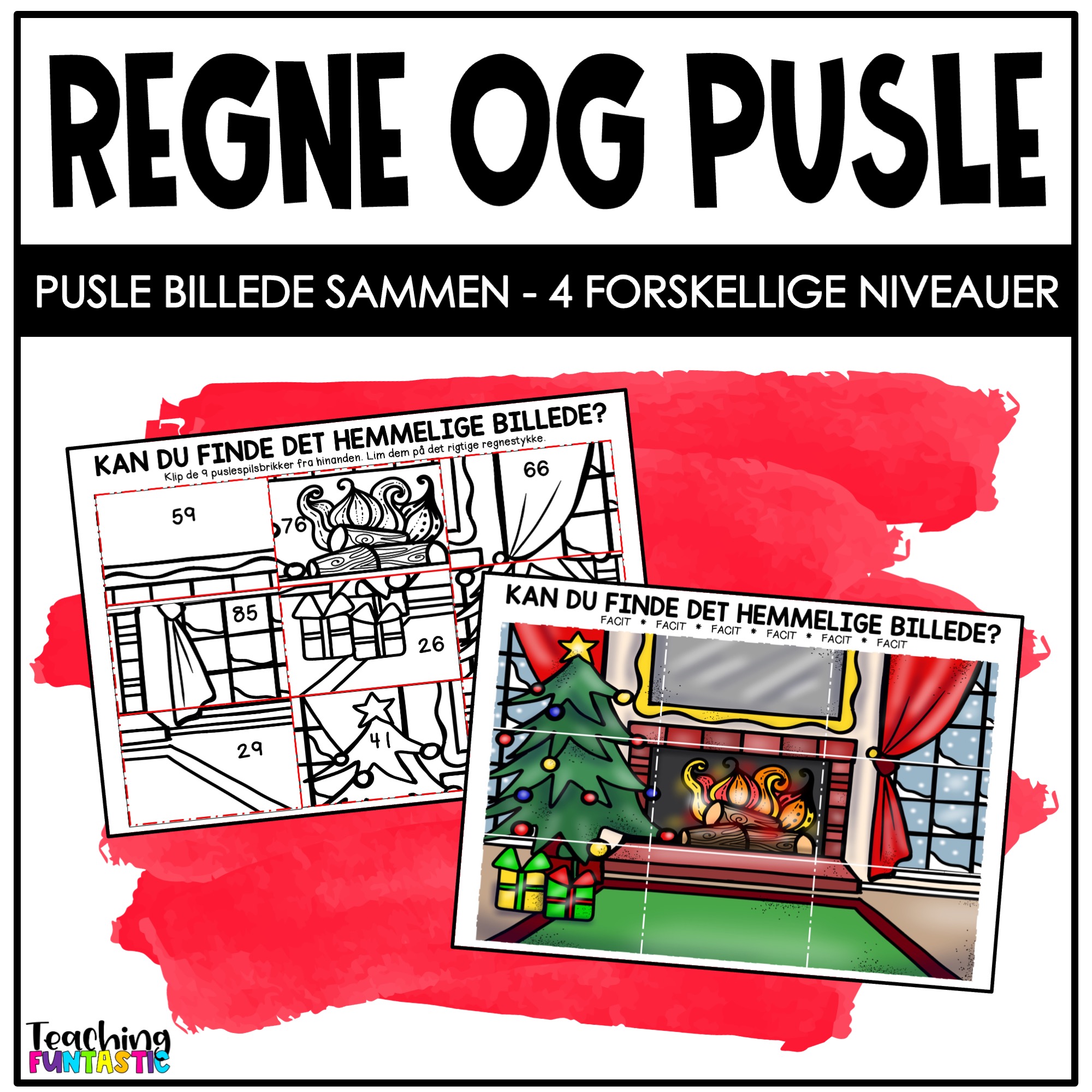 Regne og pusle er en sjov aktivitet, hvor eleverne skal regne 9 forskellige regnestykker ud på deres bræt. Derefter skal de finde puslespilsbrikken af et billede med det rigtige svar, og lime det på det rigtige sted på brættet. Har de regnet rigtigt vil de til sidst få et julebillede frem, som de kan farvelægge.
