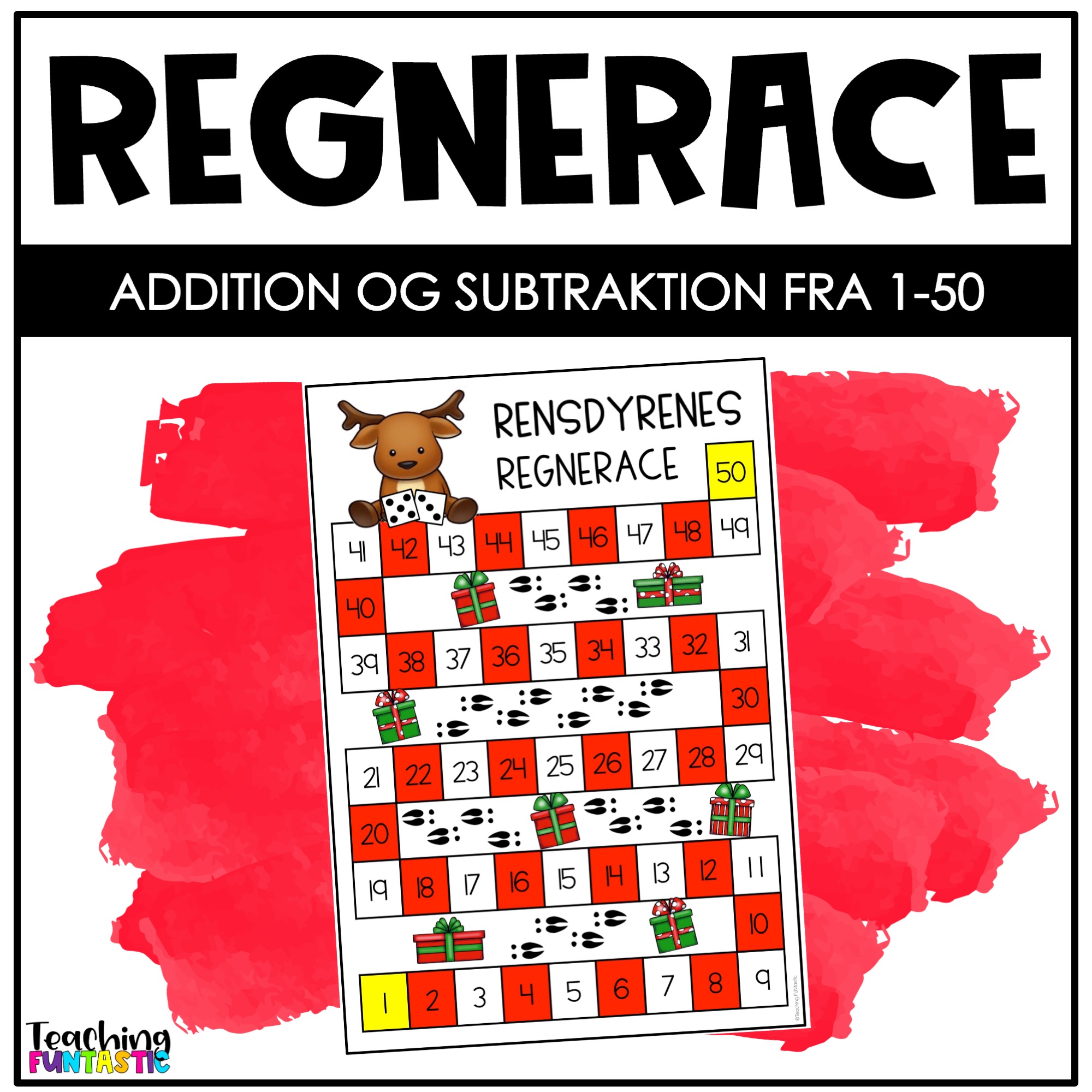 “Rensdyrenes Regnerace” er et enkelt brætspil for 2-3 spillere, som kan bruges på flere måder ved at variere sværhedsgraden. Man skal have en terning pr. spil, og en brik til at flytte pr. spiller. I spillet trænes der tælling, addition og subtraktion i talområdet 1-50.