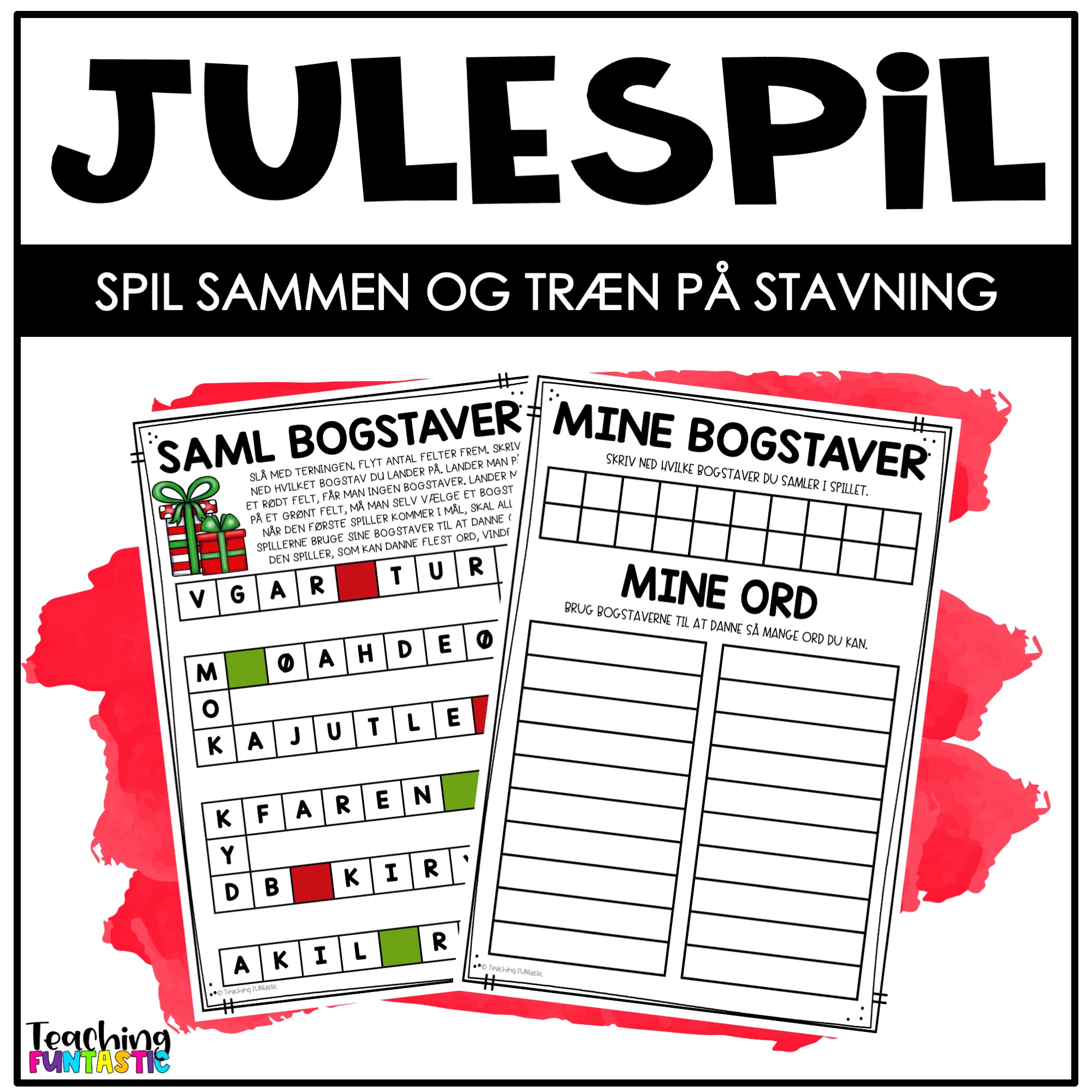 Denne opgave går ud på at eleverne efter tur kaster terning, flytter antal pladser frem på spillepladen og noterer bogstavet h*n lander på. Dette gøres helt til første spiller er nået i mål. Når første spiller er i mål, har alle spillerne et vist antal minutter til at bruge bogstaverne til at lave så mange ord som muligt. Den spiller som har klaret at lave flest ord når tiden er gået, vinder spillet.